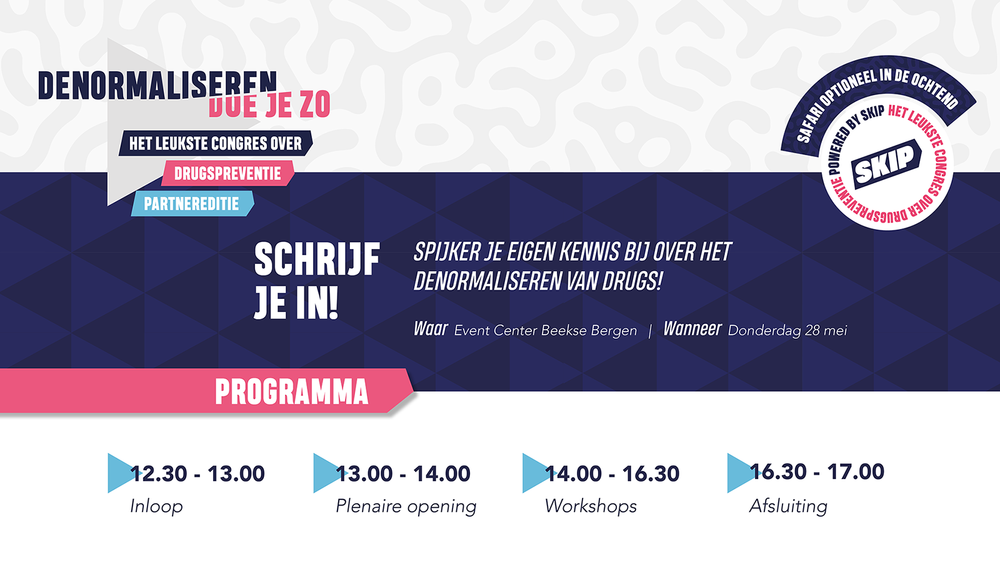 Woensdag 17 april 2024 was het zo ver: het eerste SKIP-congres Denormaliseren doe je zo, het leukste congres over drugspreventie vond plaats in congrescentrum 1931 te ‘s-Hertogenbosch. Met veel trots kijken we terug op een dag vol inspiratie waarin we met elkaar de nieuwste inzichten deelden en discussieerden over het belang van het denormaliseren van drugsgebruik.